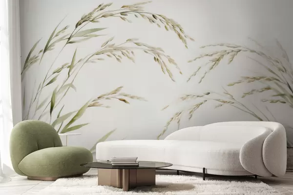 Fotomurales Delicadas gramíneas en tonos pastel con un suave efecto de acuarela Nr. w09712