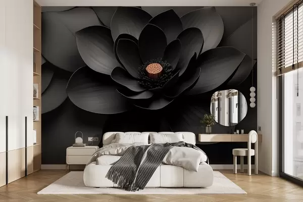 Fotomurales Flor negra minimalista con pétalos y un centro cálido que contrasta Nr. w09721