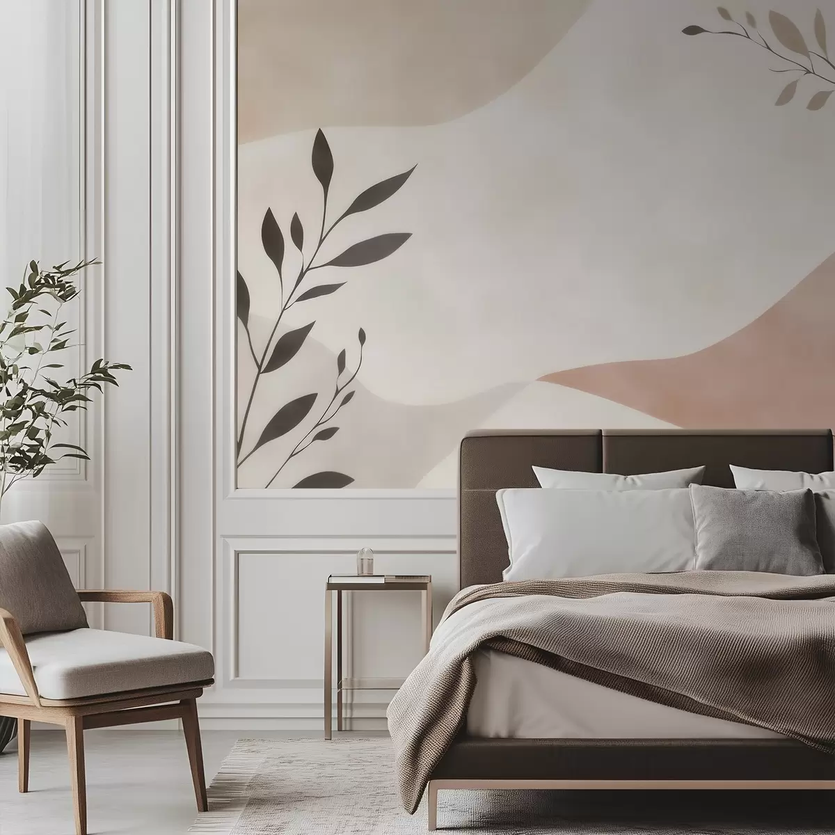 Fotomurales Olas abstractas en tonos beige y melocotón con ramas Nr. w09722