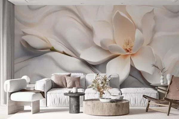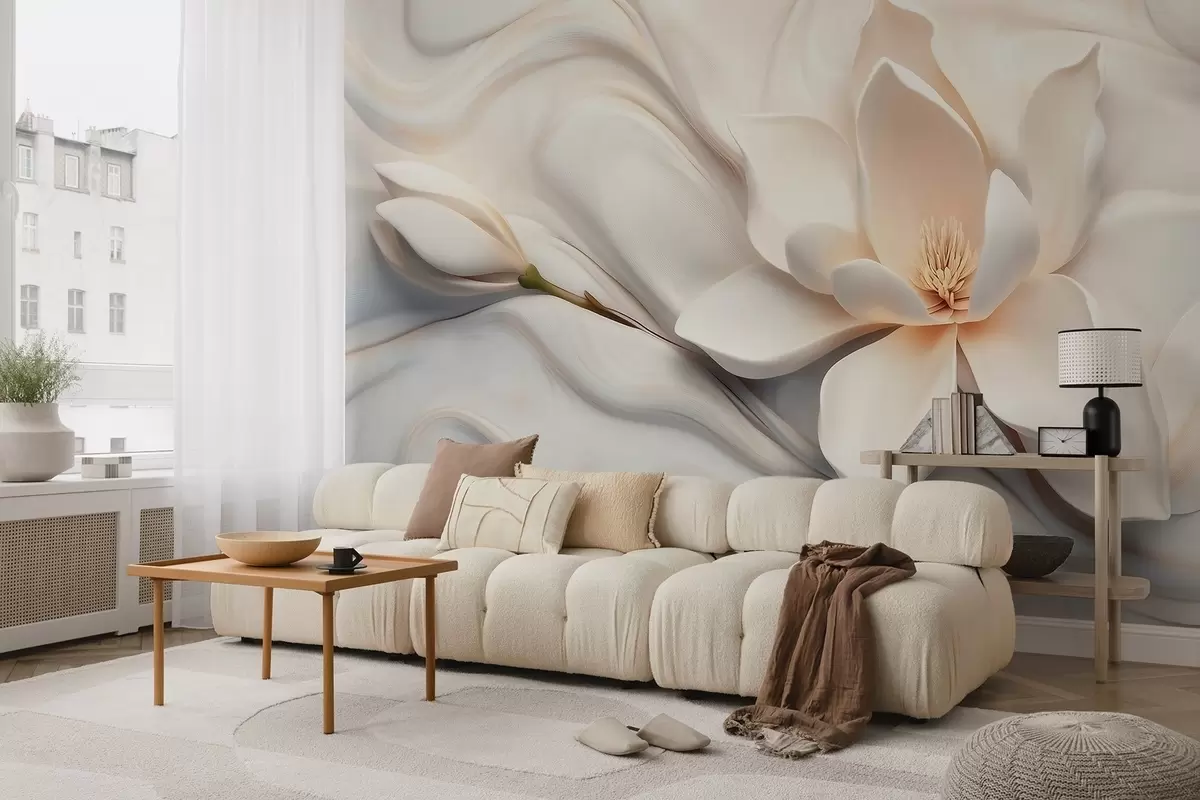 Fotomurales Magnolia blanca tridimensional con imitación de textura de mármol en relieve. Nr. w09729