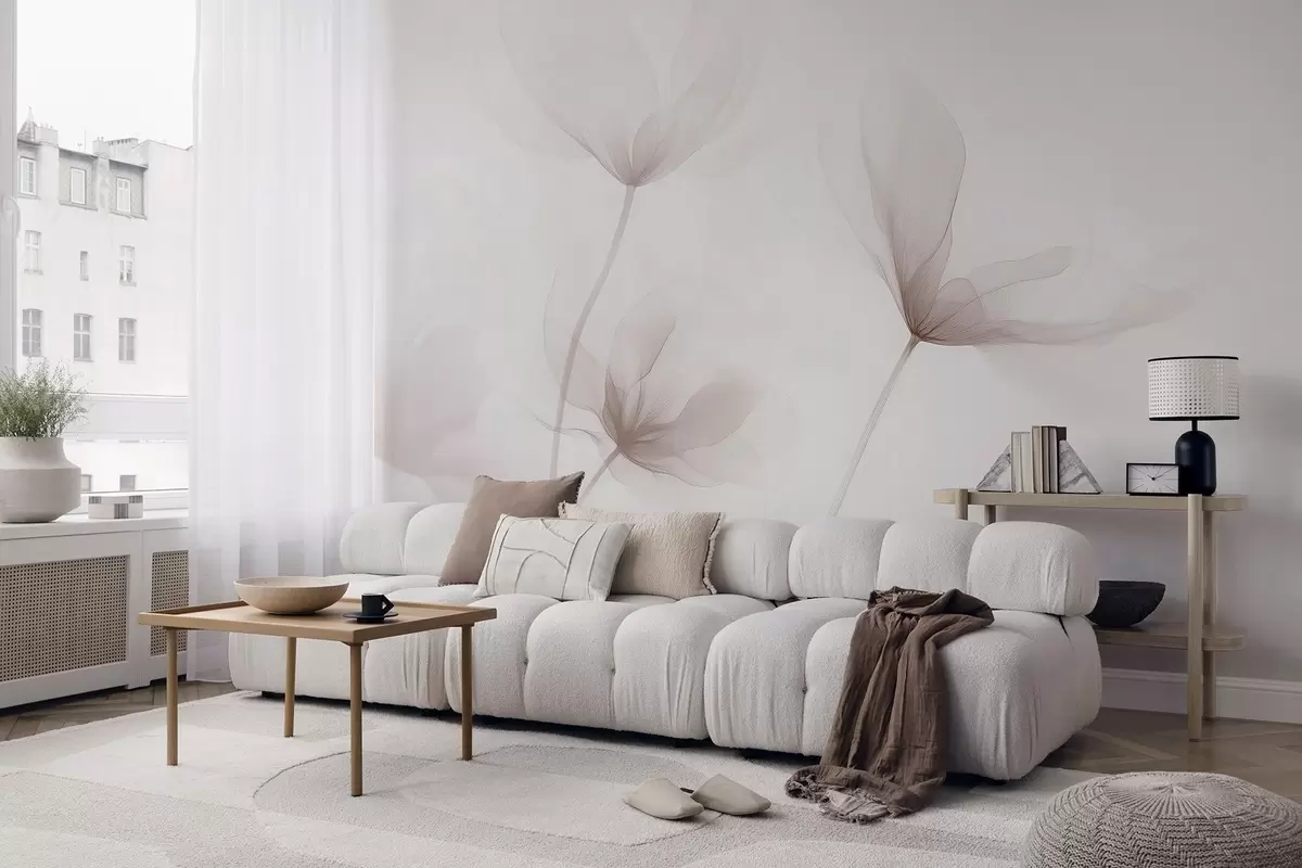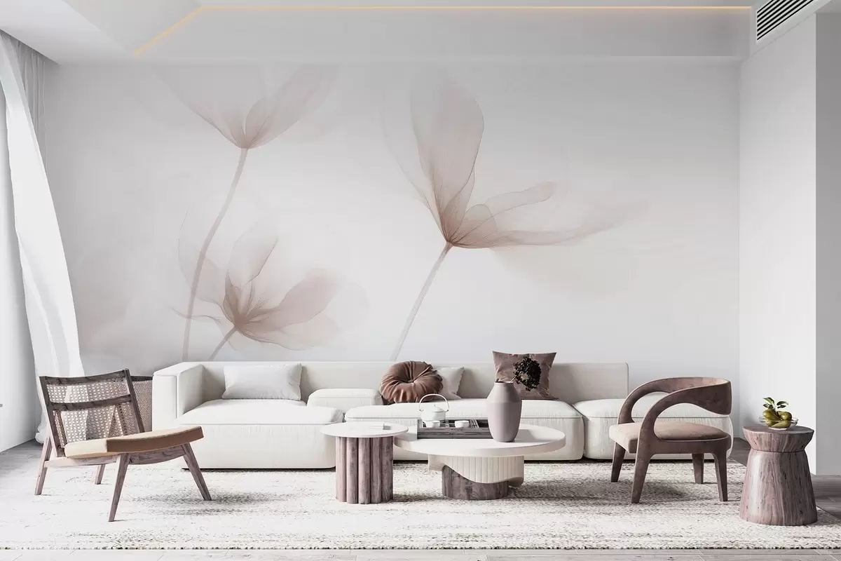 Fotomurales Flores beige aireadas en un estilo minimalista y ligero. Nr. w09734