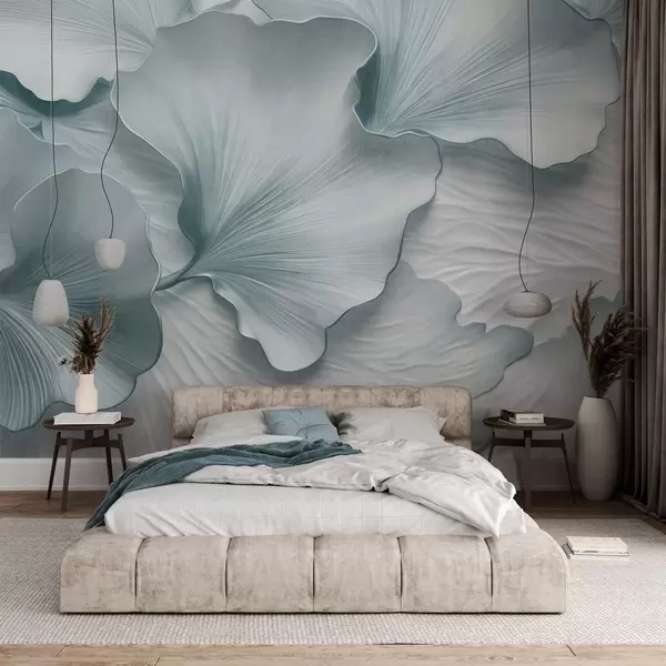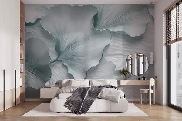 Fotomurales Pétalos de hojas de ginkgo texturizados, azules y blancos, con un delicado estampado orgánico. Nr. w09741v1