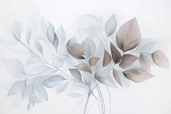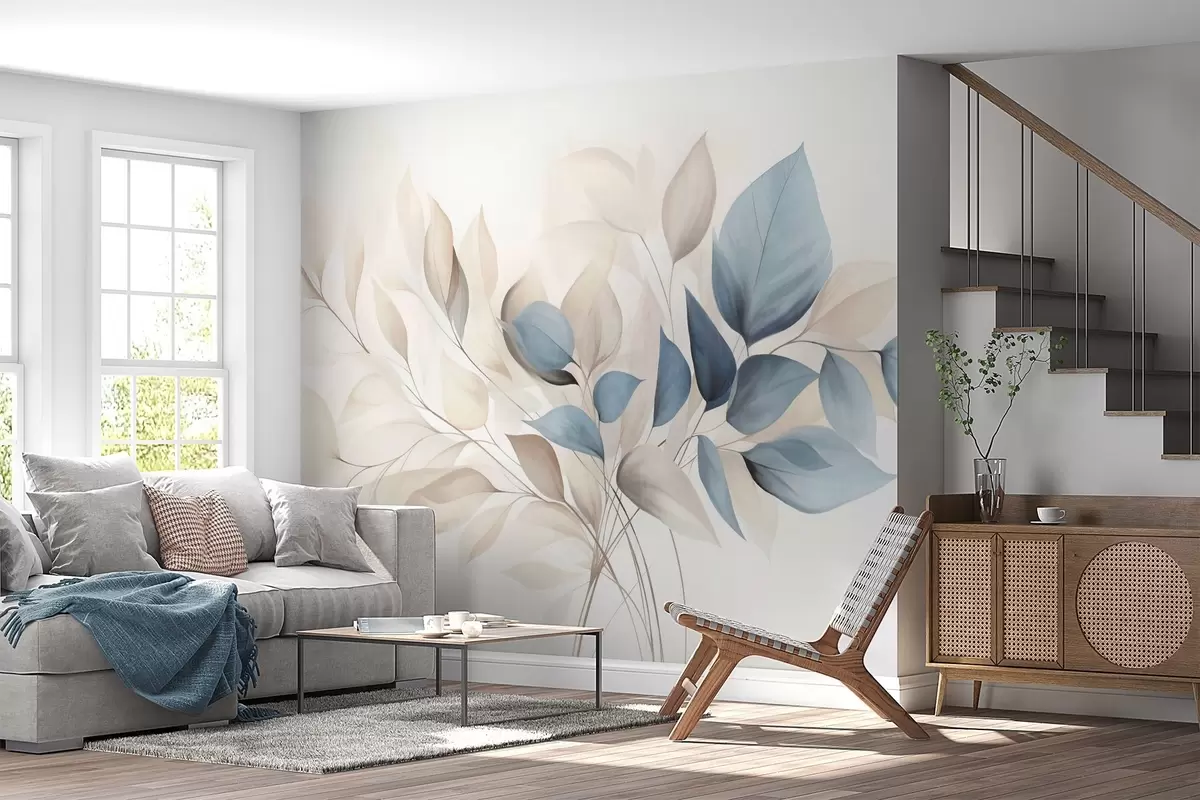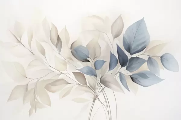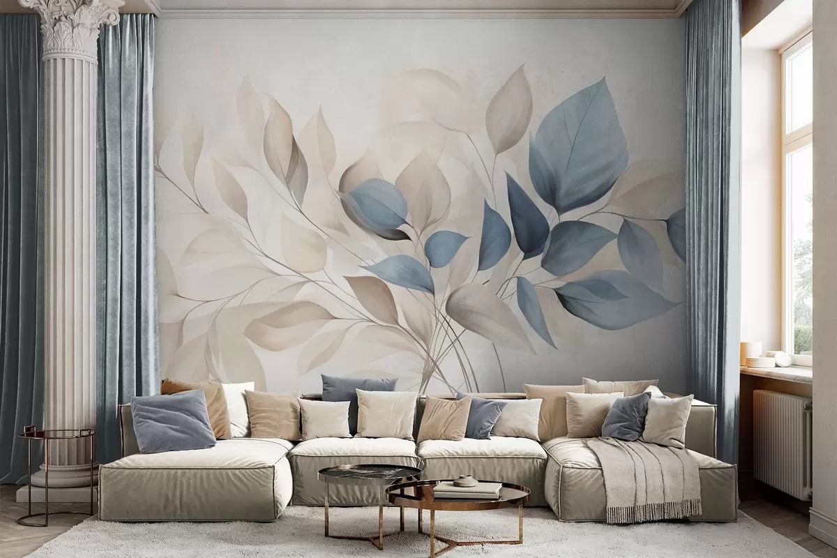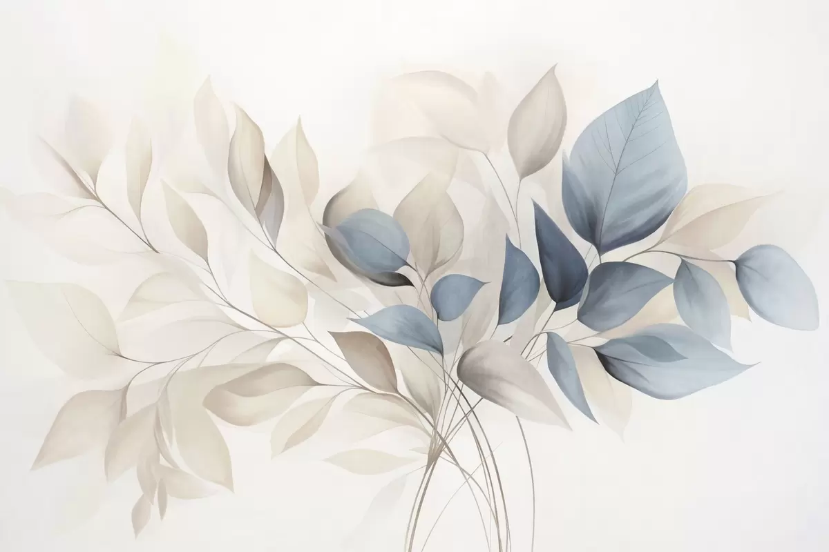 Fotomurales Hojas abstractas translúcidas en tonos azul, beige y crema, arte texturizado. Nr. w09744