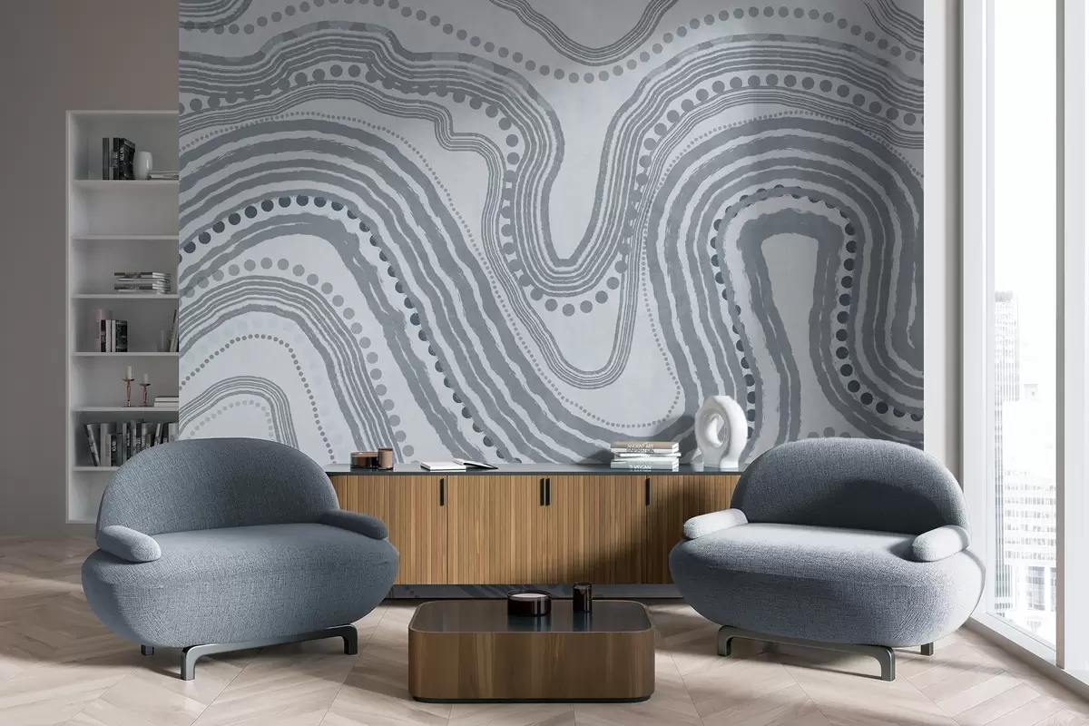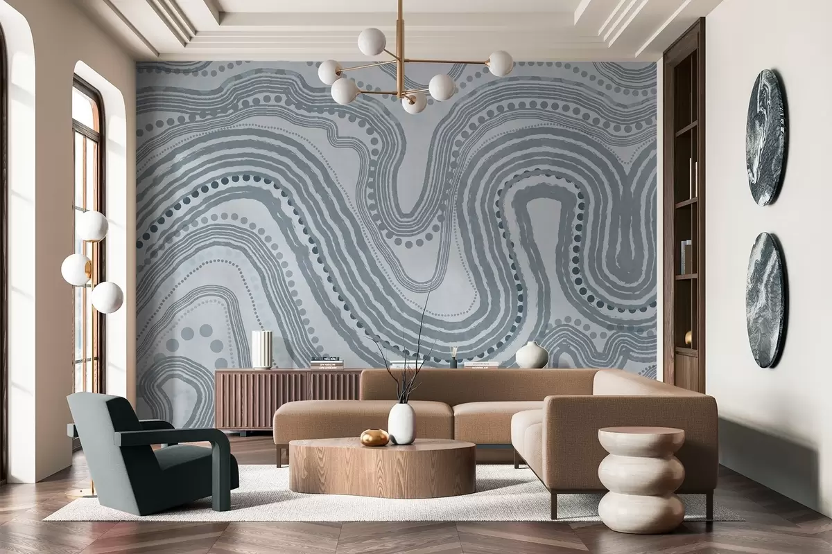 Fotomurales Líneas onduladas y puntos azules abstractos, arte moderno con textura. Nr. w09747v3