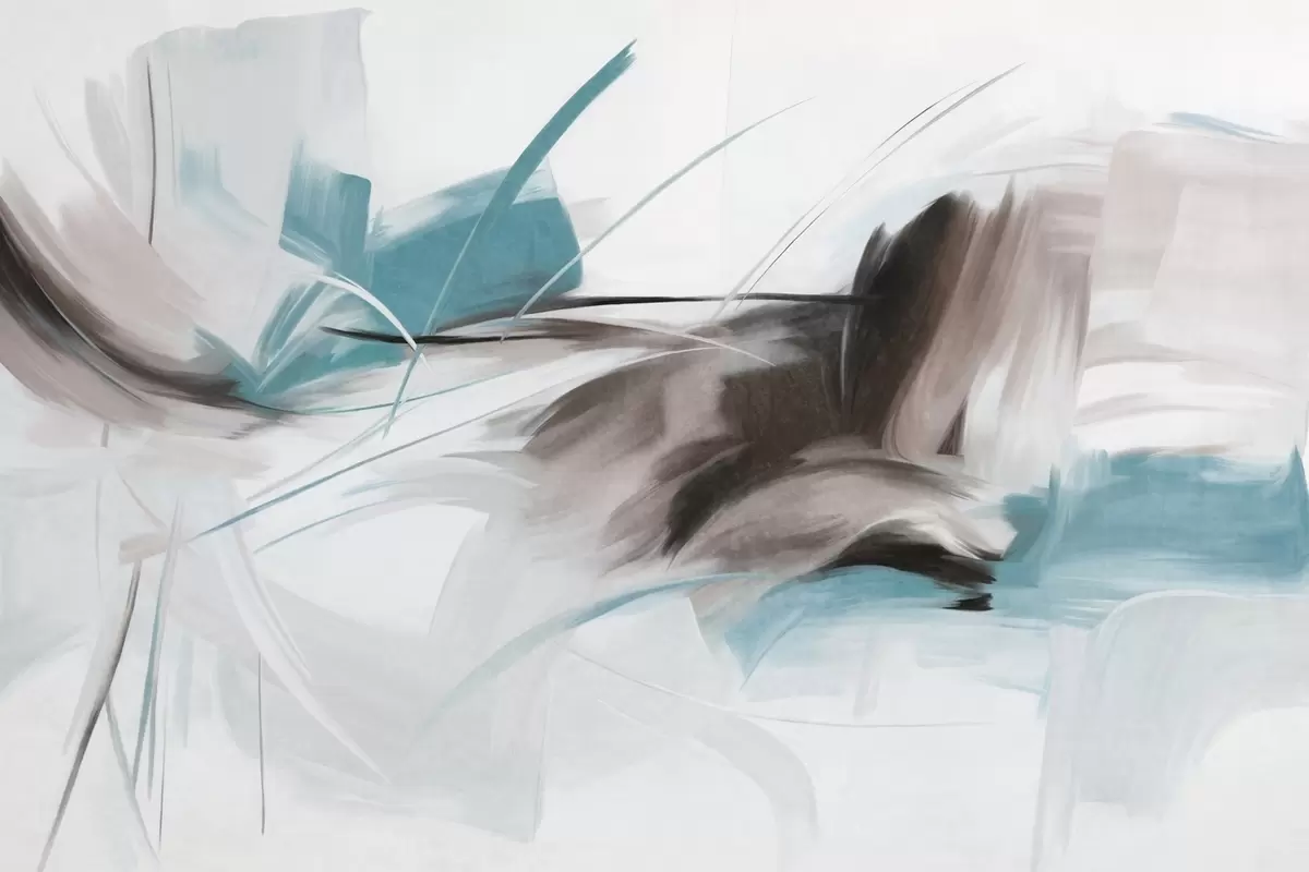 Fotomurales Estilo de pintura abstracta con pinceladas texturizadas en marrón y azul. Nr. w09755v1