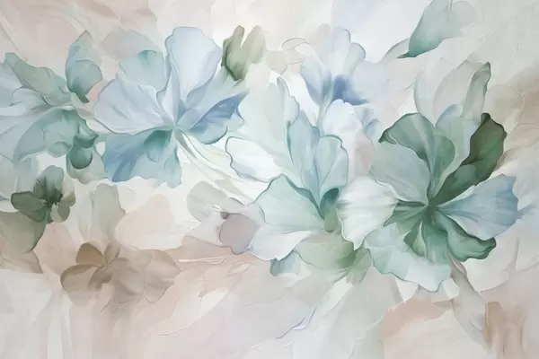 Fotomurales Flores abstractas de fantasía en tonos rosa, melocotón y lavanda, en estilo pictórico y con textura Nr. w09767