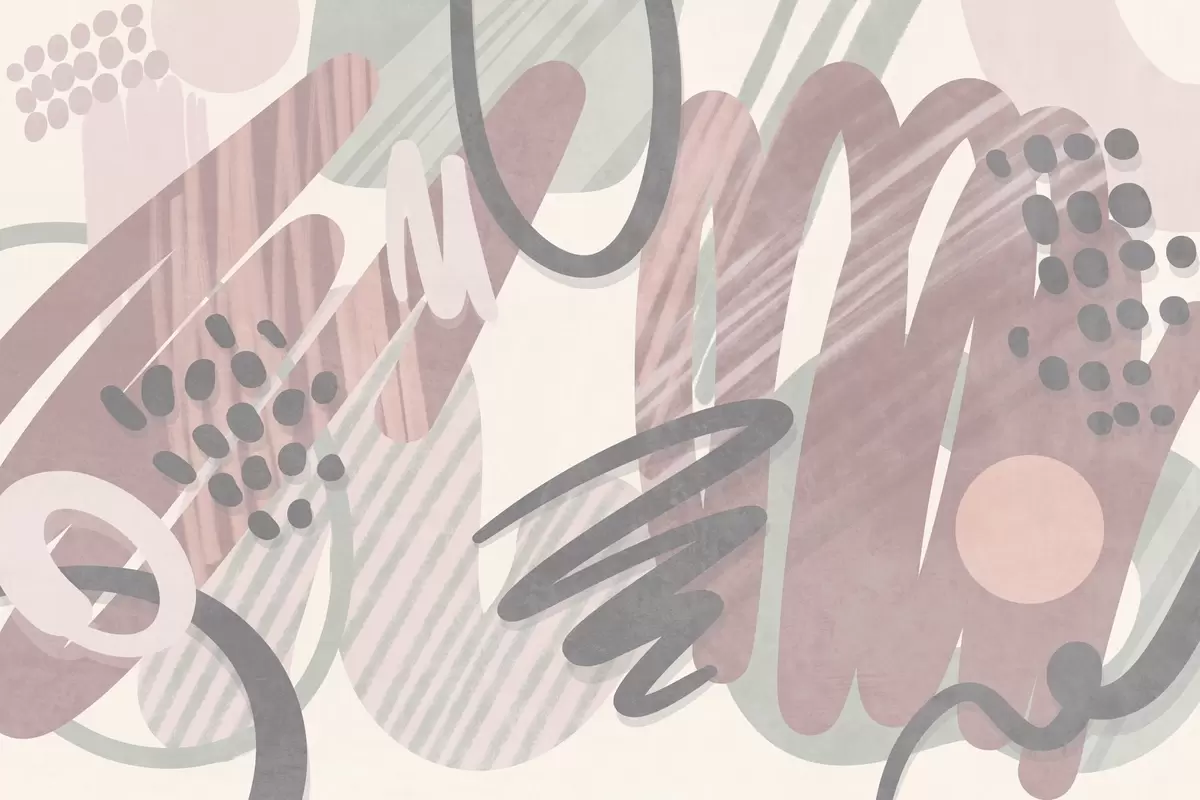Fotomurales Estampado abstracto con texturas, formas orgánicas, garabatos y puntos en tonos pastel apagados Nr. w09774v1