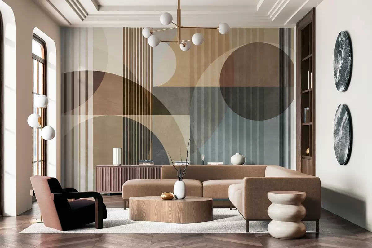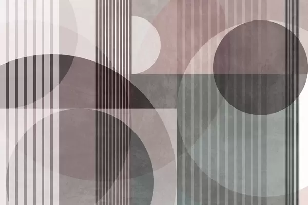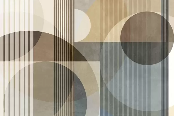 Fotomurales Formas geométricas abstractas con círculos y líneas, tonos tierra apagados, composición con texturas y capas Nr. w09834
