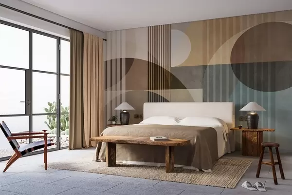 Fotomurales Formas geométricas abstractas con círculos y líneas, tonos tierra apagados, composición con texturas y capas Nr. w09834