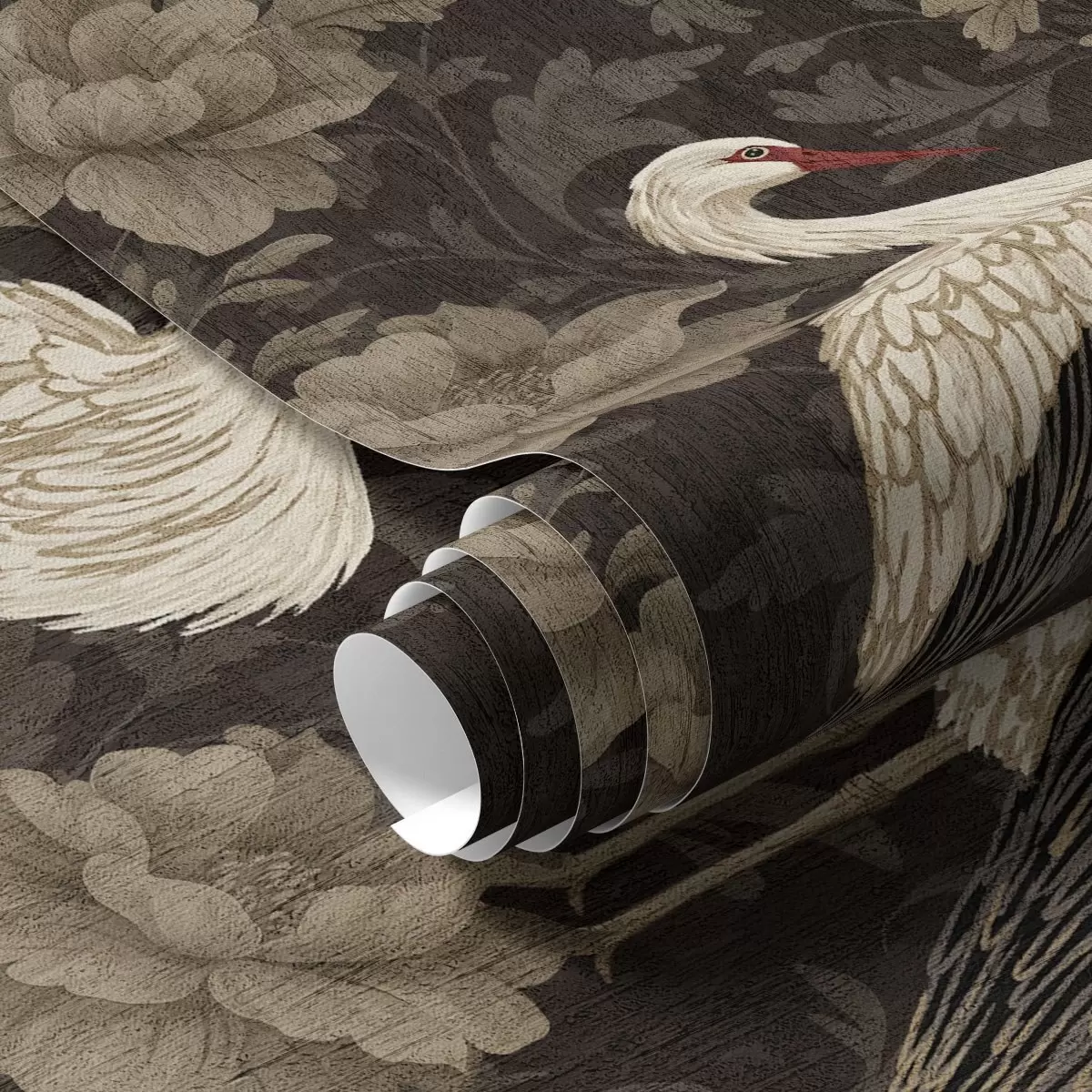Papel tapiz Grullas entre grandes flores en una clásica paleta pastel Nr. a00108
