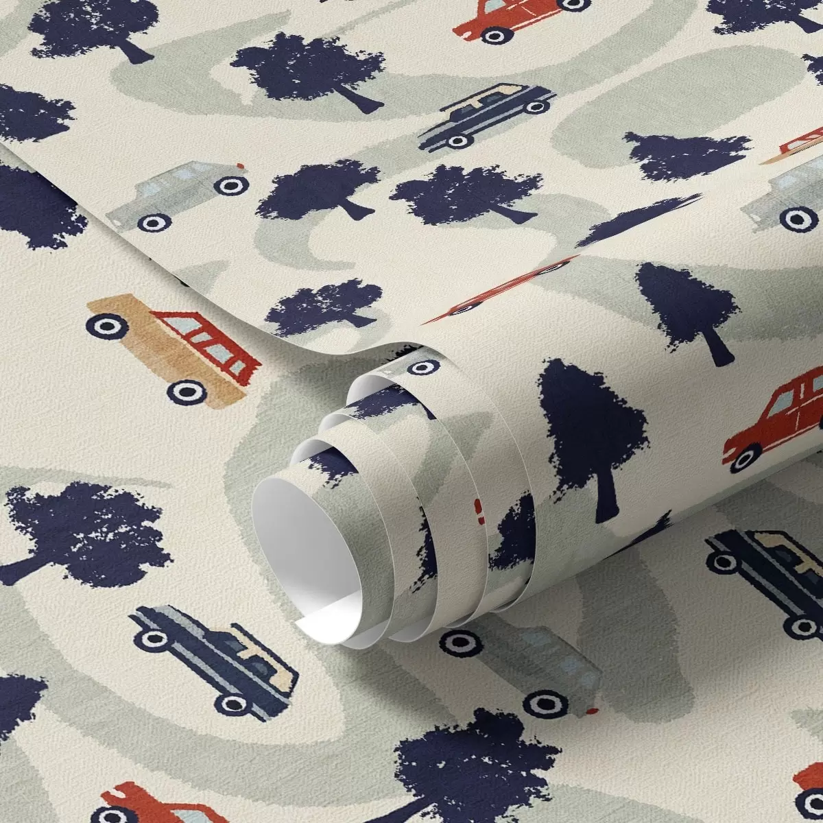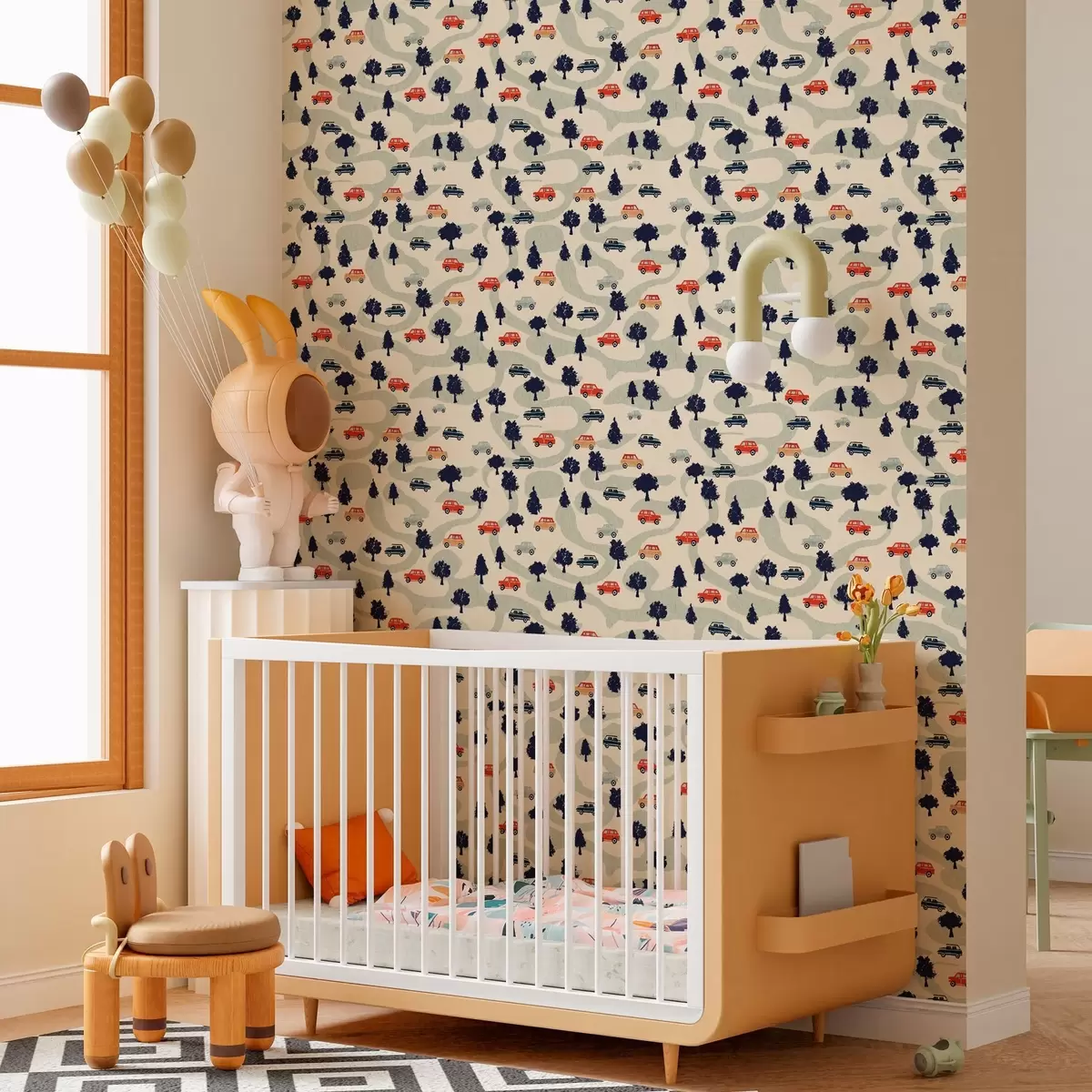 Papel tapiz Divertidos coches entre los árboles sobre fondo crema Nr. a00119