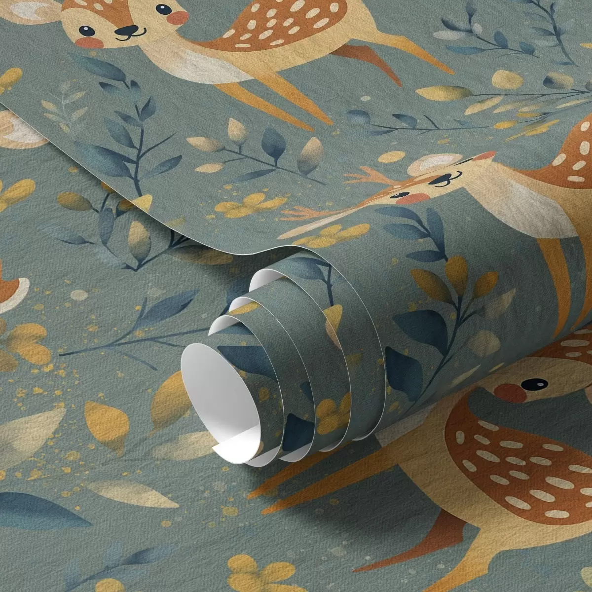 Papel tapiz Cría de ciervo en el bosque con hojas amarillas Nr. a00124v1