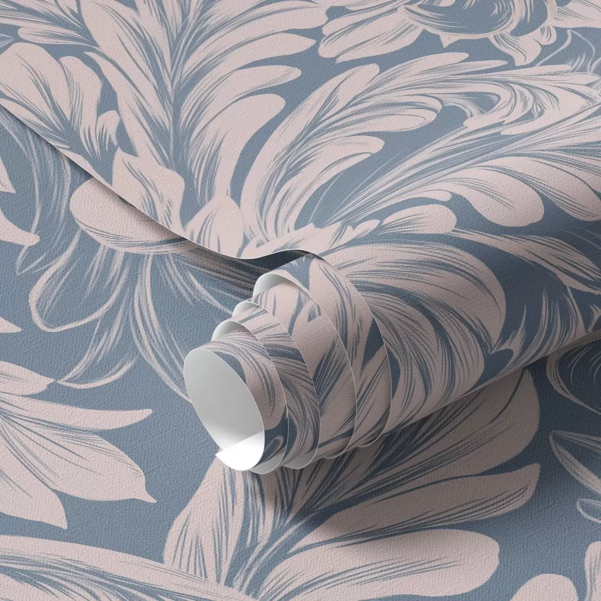Papel tapiz Rizos vegetales en tonos crema sobre fondo azul y gris Nr. a00135v2