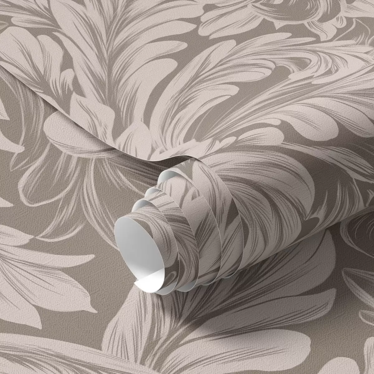 Papel tapiz Hojas color crema sobre fondo marrón Nr. a00135v3
