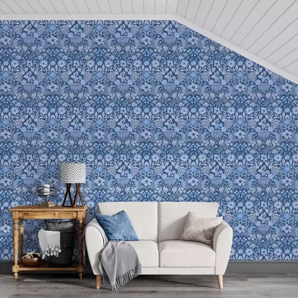 Papel tapiz Estampado botánico azul de estilo vintage Nr. a00145v2