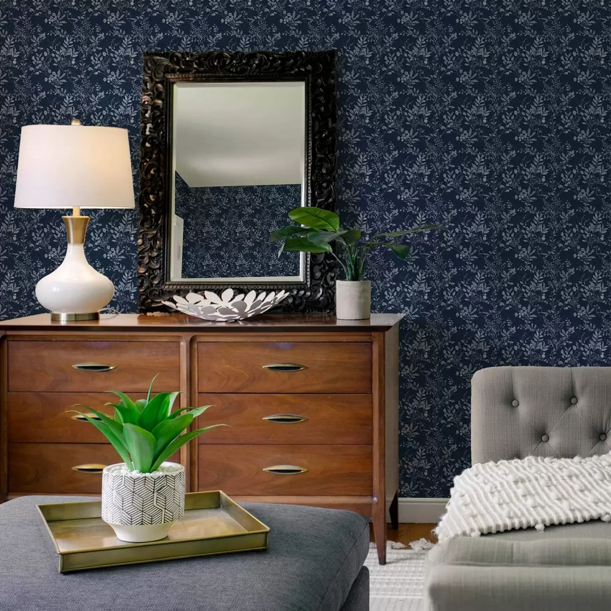 Papel tapiz Estampado botánico claro sobre fondo oscuro Nr. a00166