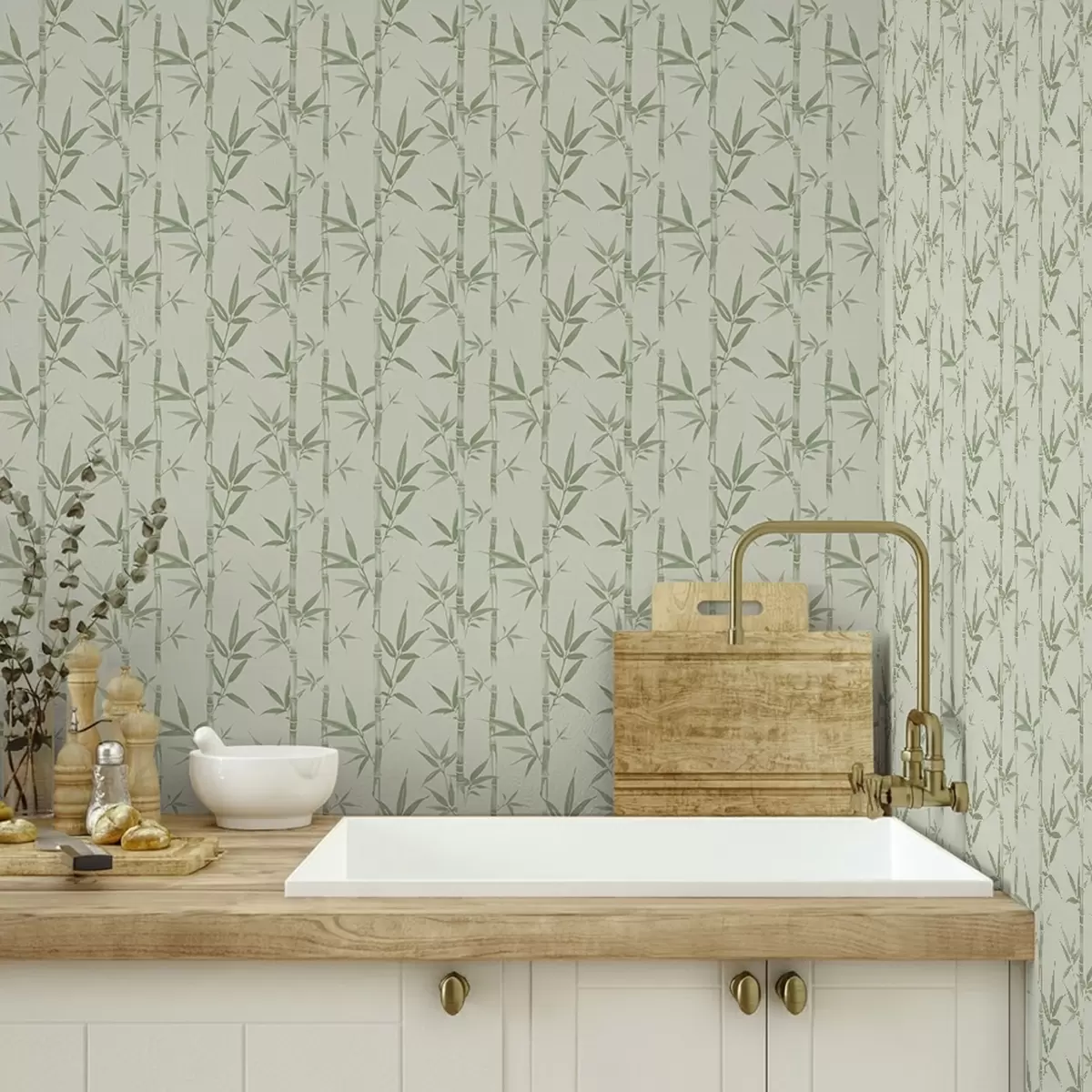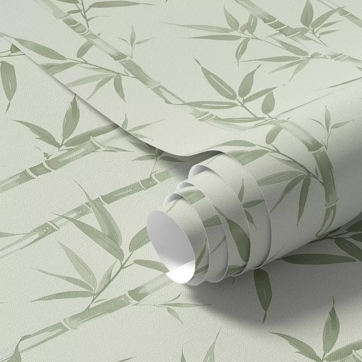 Papel tapiz Bambú verde claro sobre fondo pastel suave Nr. a00236v1
