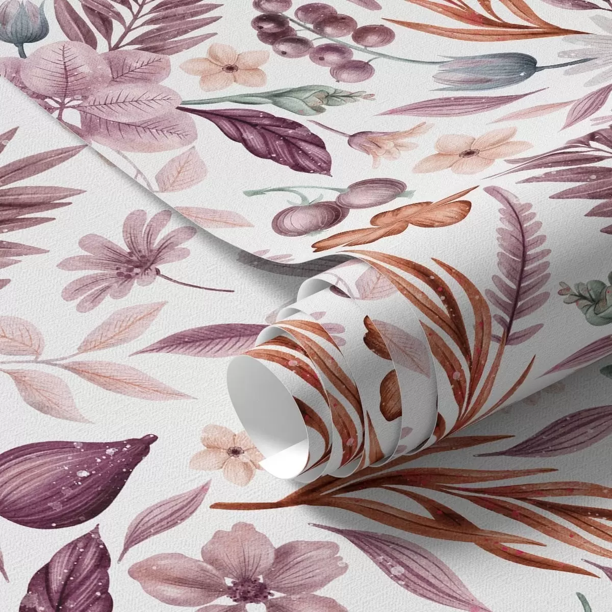 Papel tapiz Bayas, flores y hojas brillantes en estilo acuarela Nr. a00298