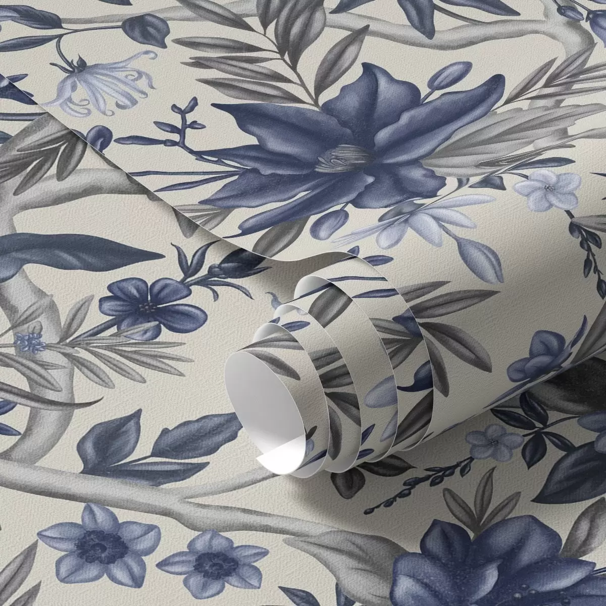Papel tapiz Flores azules y grises sobre fondo claro Nr. a00304