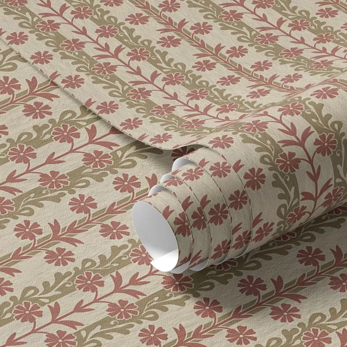 Papel tapiz Adorno a rayas con flores rojas Nr. a00341