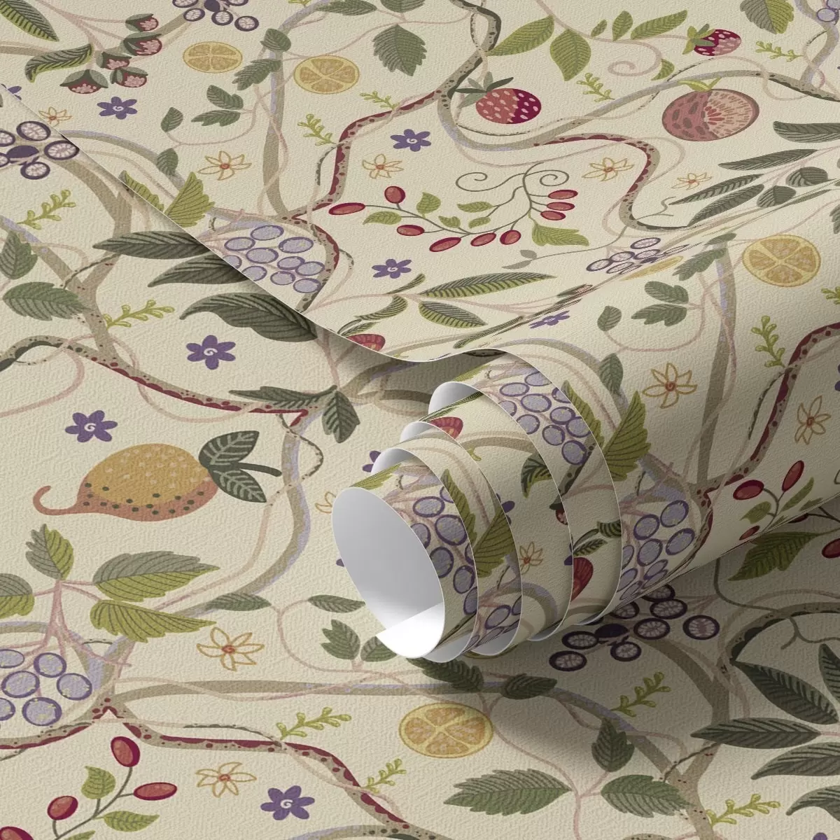 Papel tapiz Motivo frutal con bayas, ramas y flores Nr. a00428