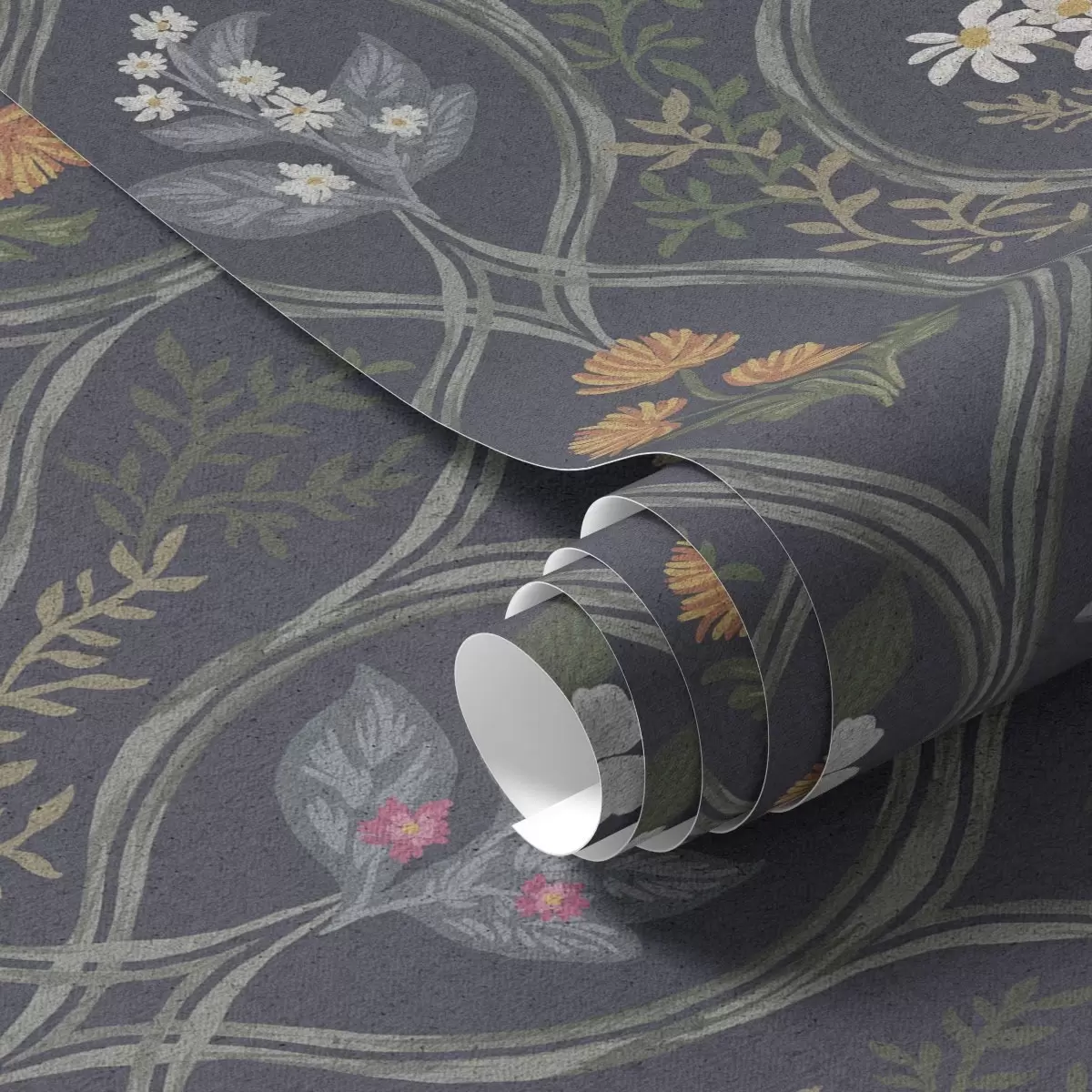 Papel tapiz Marco vintage oscuro con coloridas flores de jardín Nr. a00454