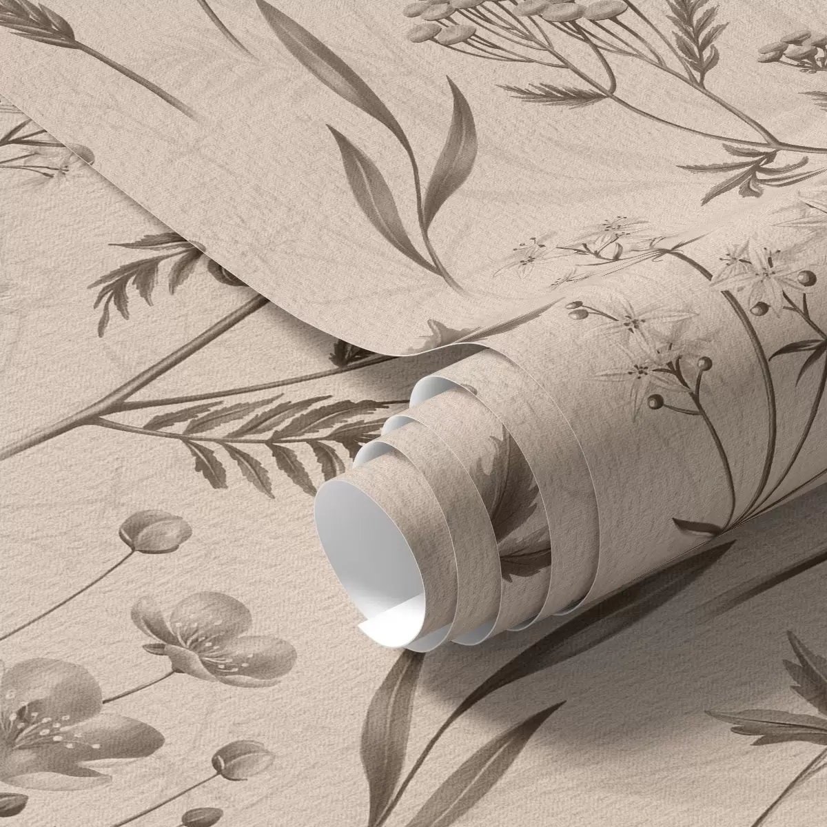 Papel tapiz Flores amarillas y verdes en tonos grises-marrones Nr. a00472v1