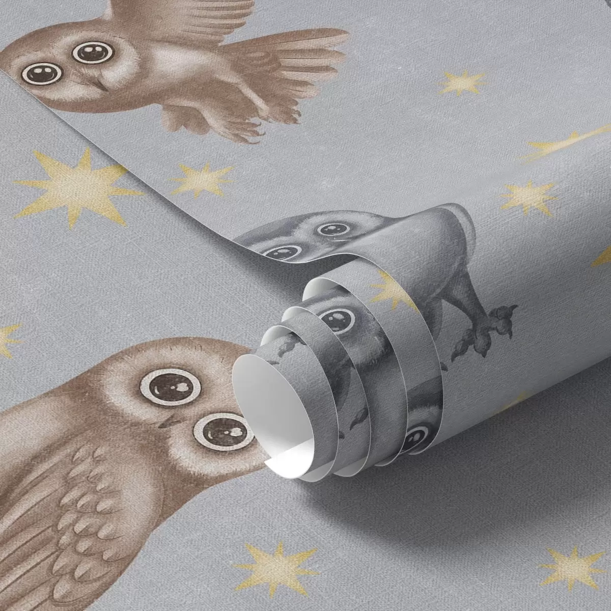 Papel tapiz Búhos y estrellas sobre un fondo de cielo nocturno gris Nr. a00475