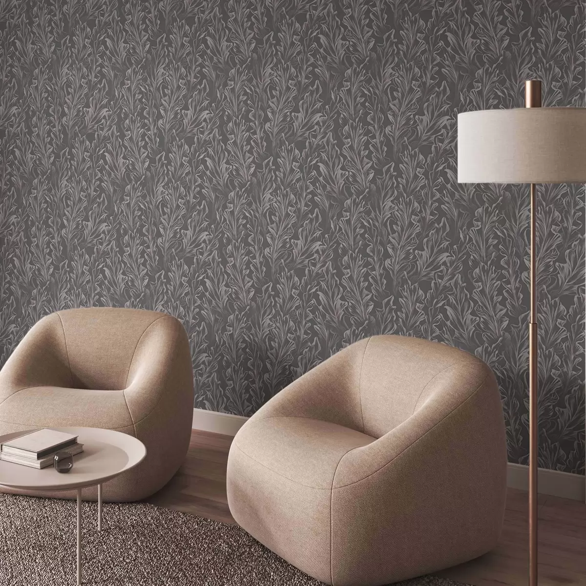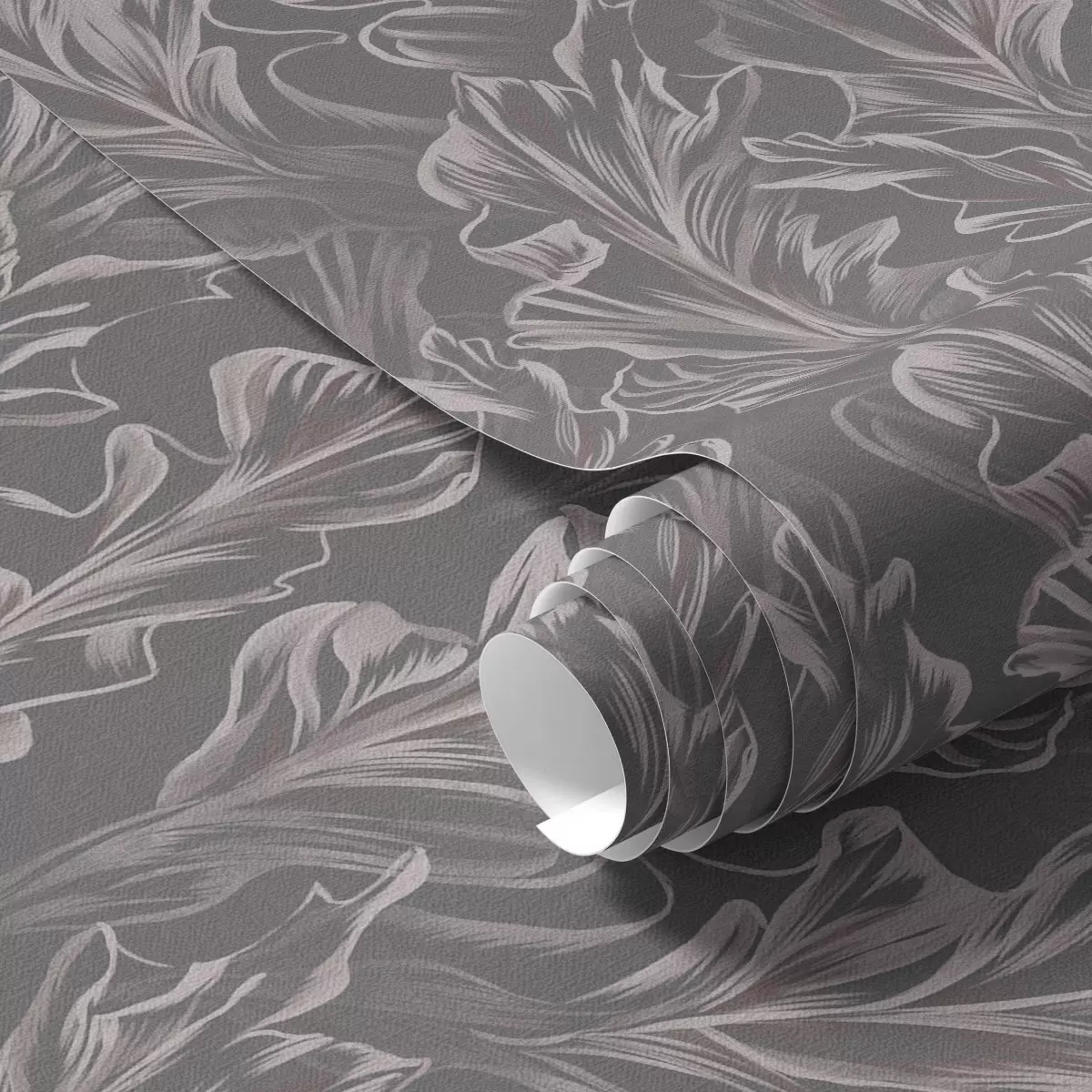 Papel tapiz Ondulaciones de hojas fluidas sobre fondo grafito, alto contraste Nr. a00495v1