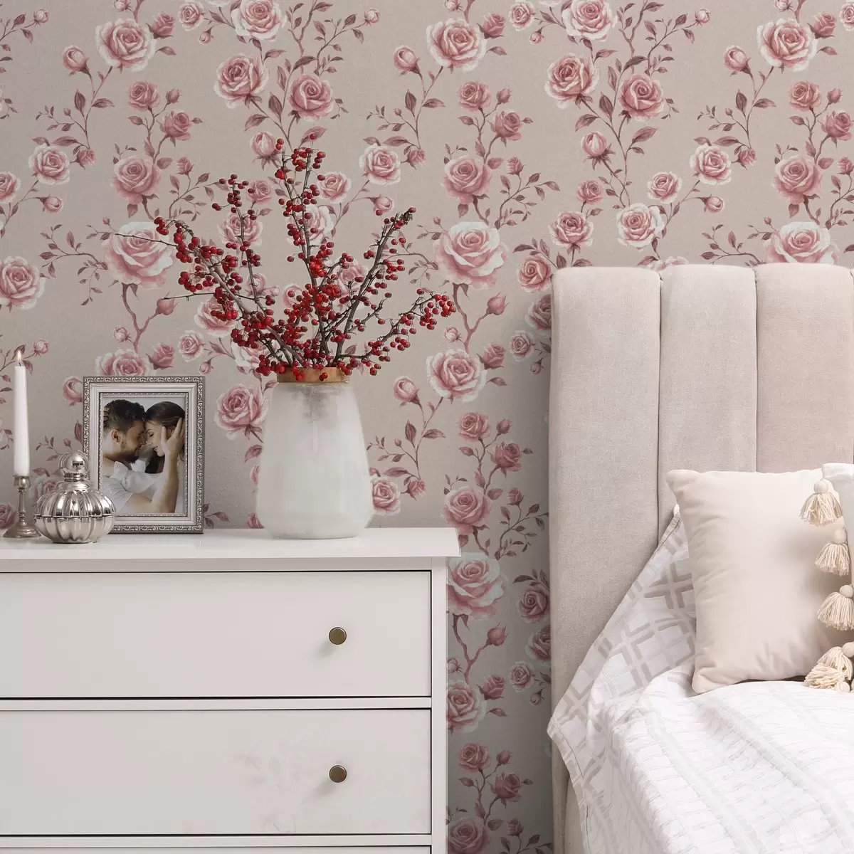 Papel tapiz Rosas en polvo sobre fondo beige — estampado vintage Nr. a00497