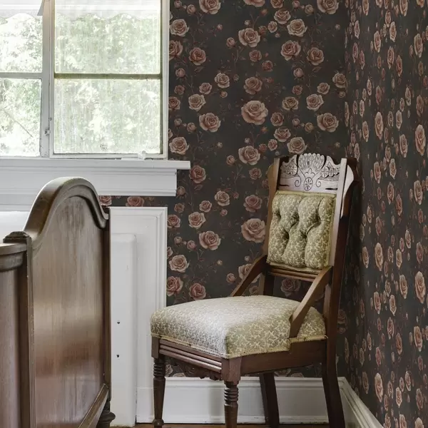 Papel tapiz Rosas vintage sobre fondo grafito, paleta terracota Nr. a00497v1