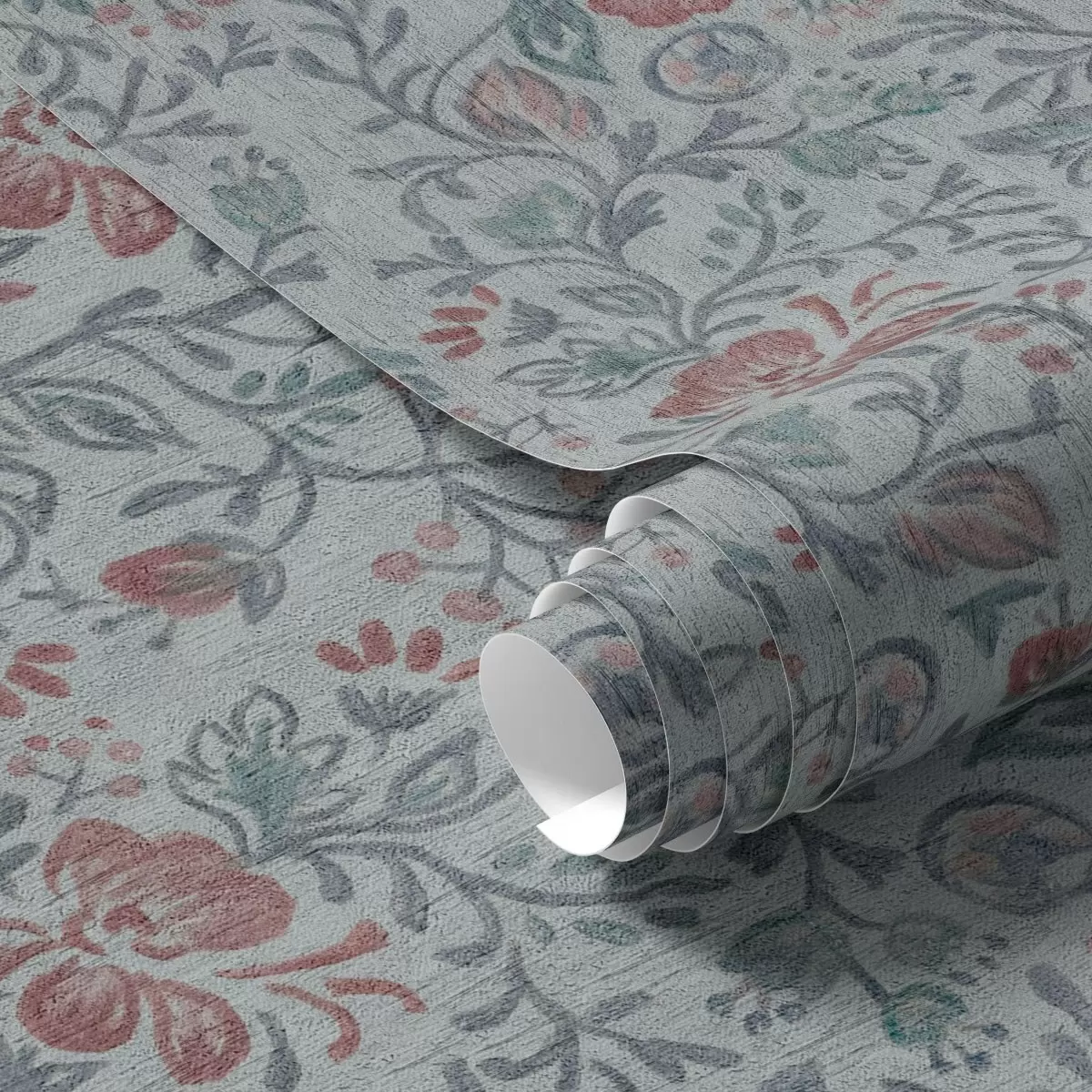 Papel tapiz Flores en tonos pastel sobre fondo gris azulado Nr. a00499