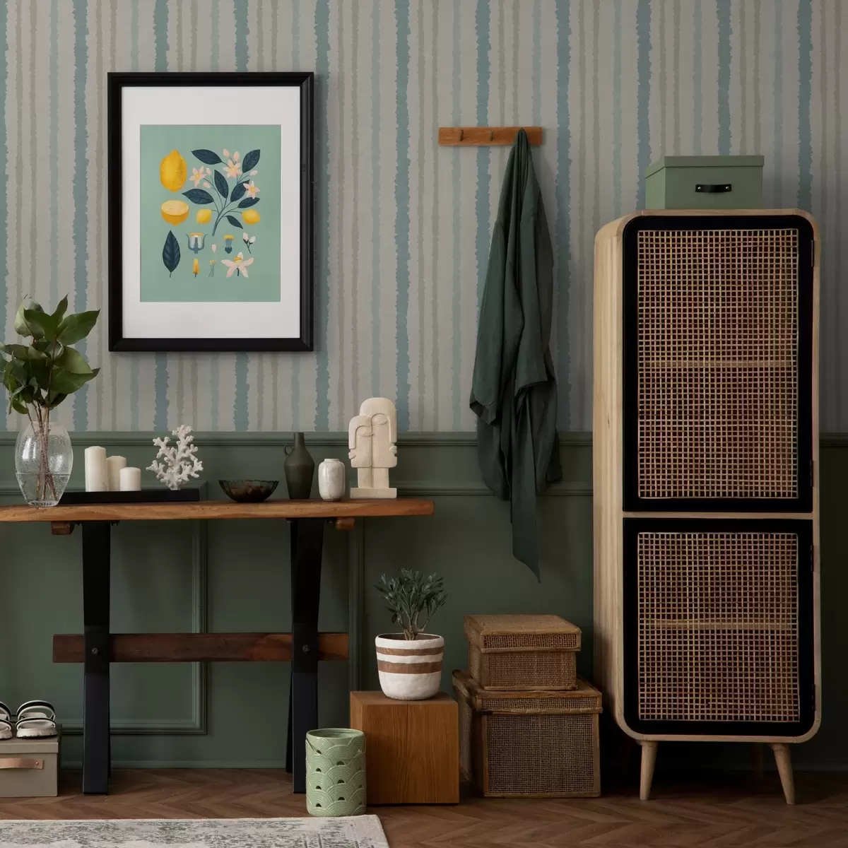 Papel tapiz Rayas turquesa-beige con efecto pintado a mano Nr. a00510v1