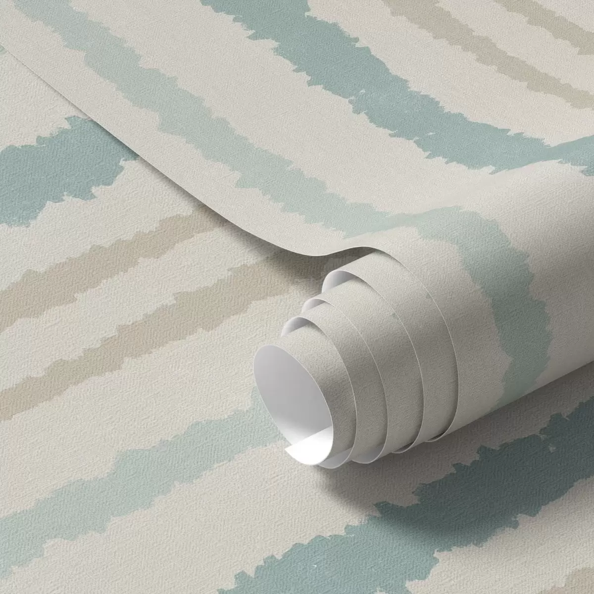 Papel tapiz Rayas turquesa-beige con efecto pintado a mano Nr. a00510v1