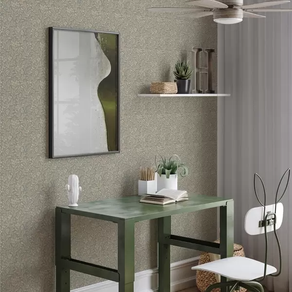 Papel tapiz Estilo Morris: ramas beige sobre fondo gris verdoso Nr. a00569