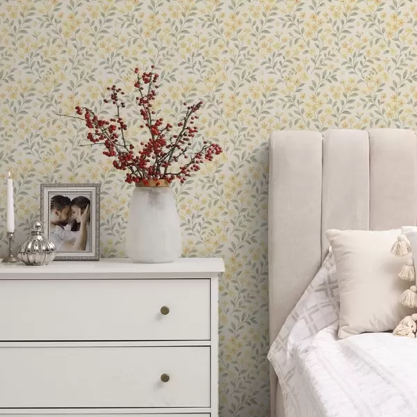 Papel tapiz Flores amarillas pintadas con acuarela sobre un fondo claro Nr. a00570