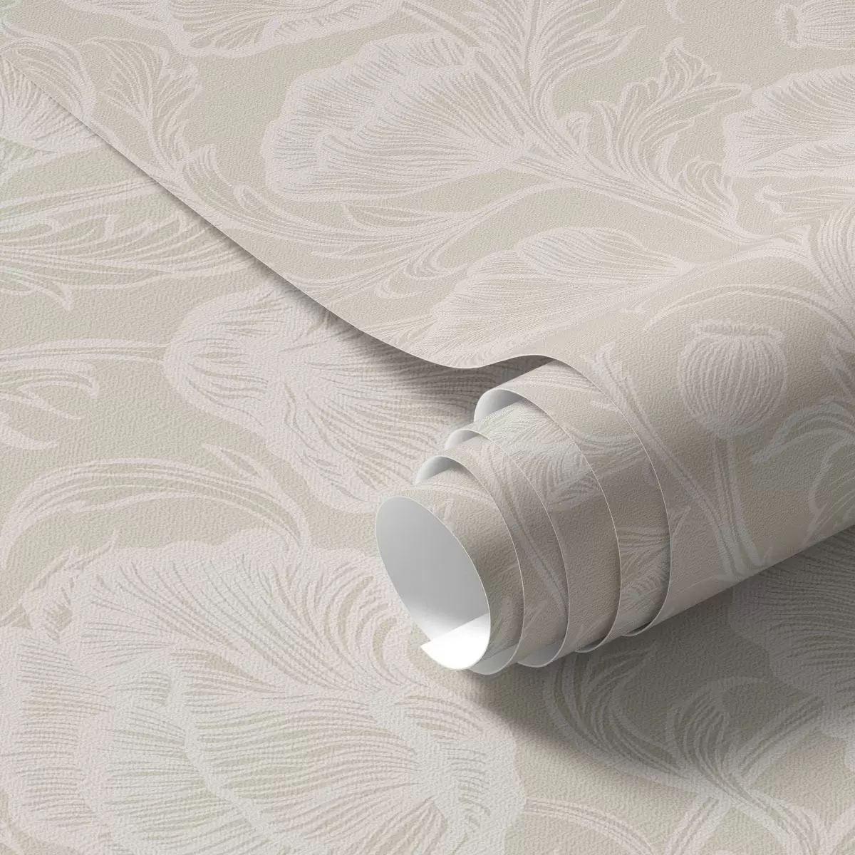 Papel tapiz Amapolas en línea sobre fondo crema Nr. a00572