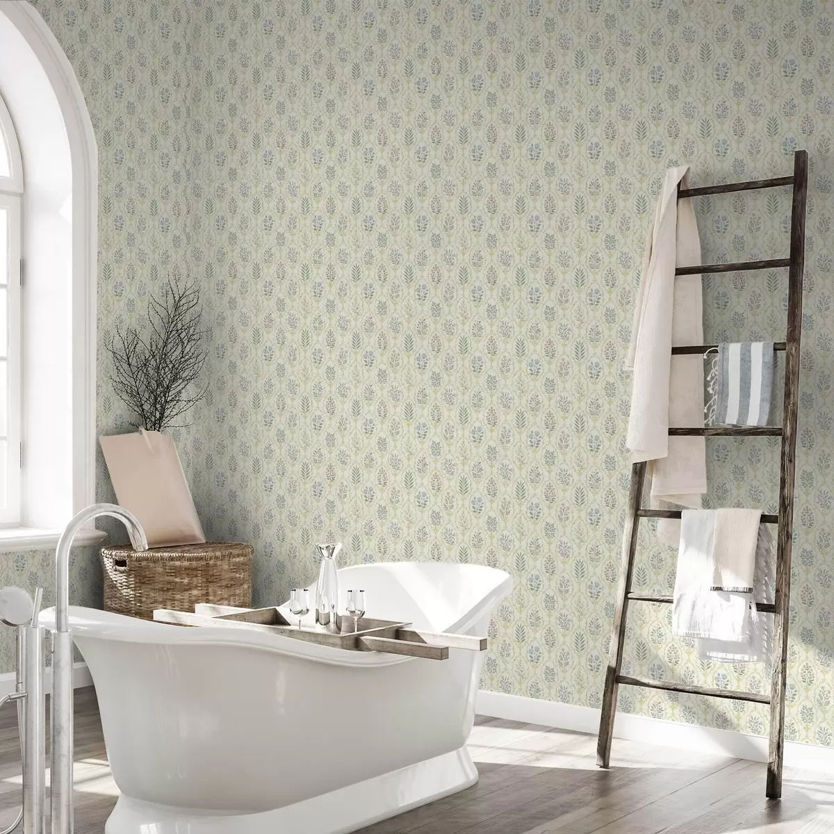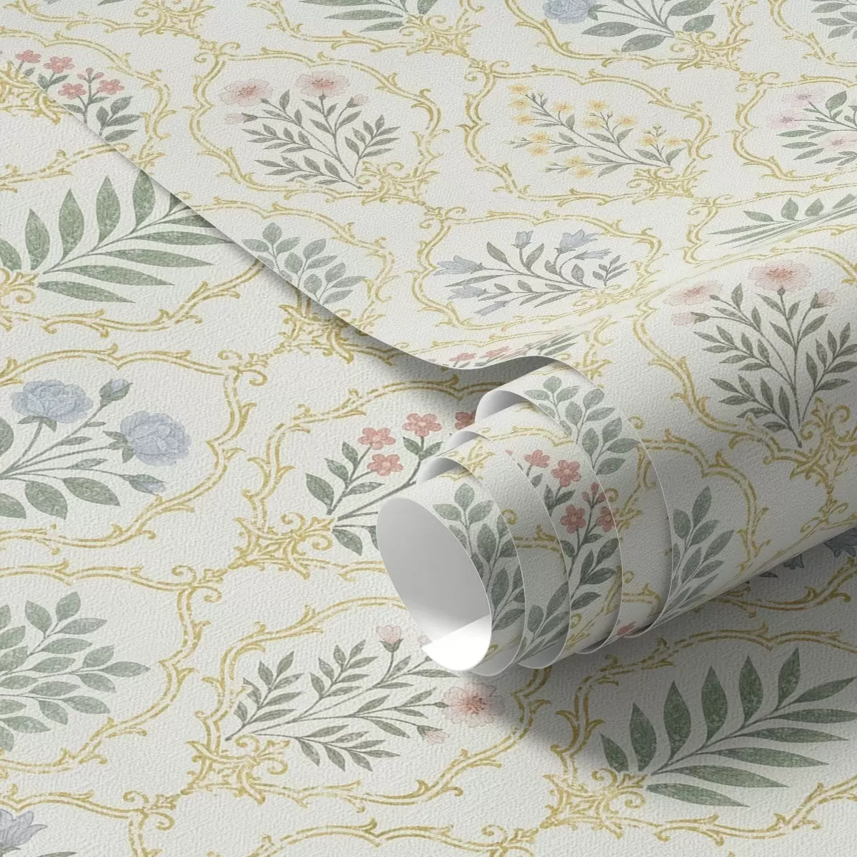 Papel tapiz Medallones botánicos en celosía, tonos pastel Nr. a00579