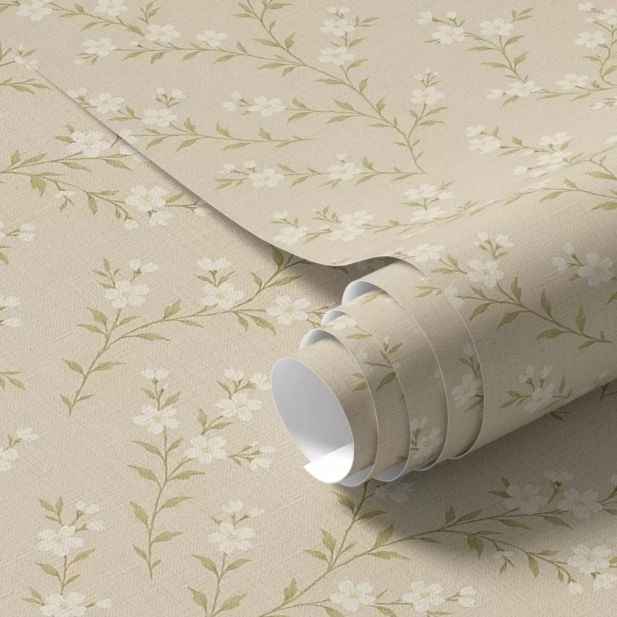 Papel tapiz Pequeñas ramitas blancas sobre un fondo de lino beige Nr. a00584