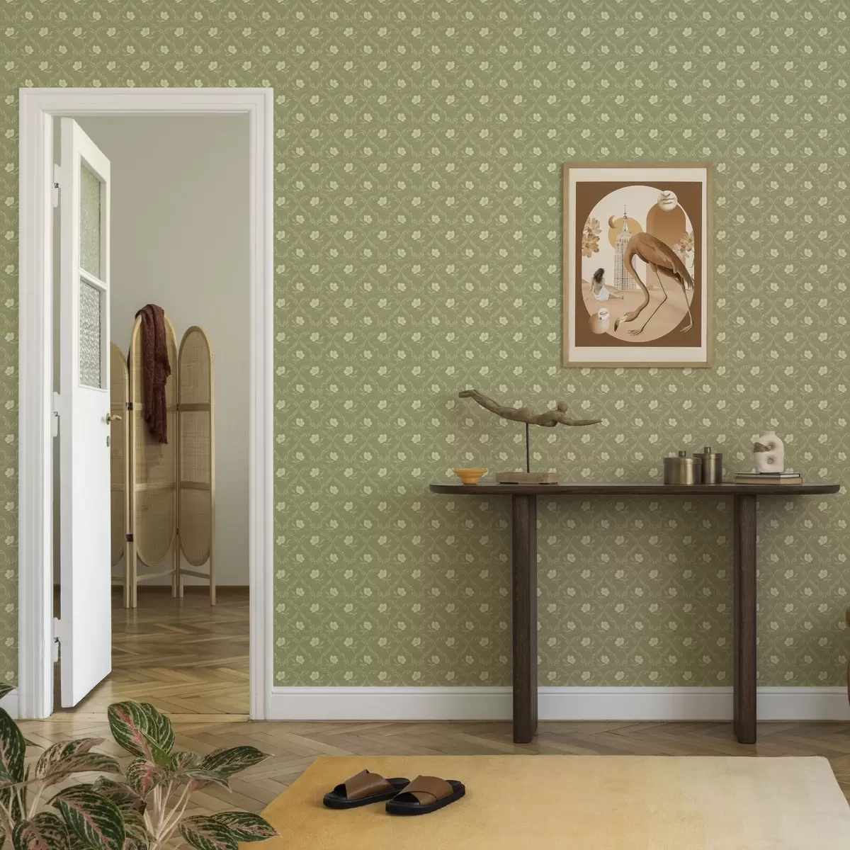 Papel tapiz Enrejado de olivo con flores color crema, adorno retro Nr. a00585