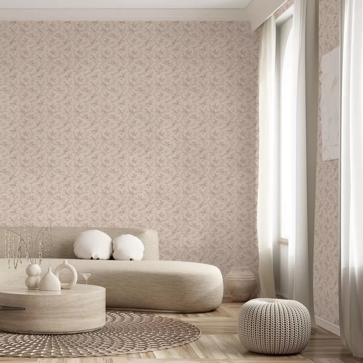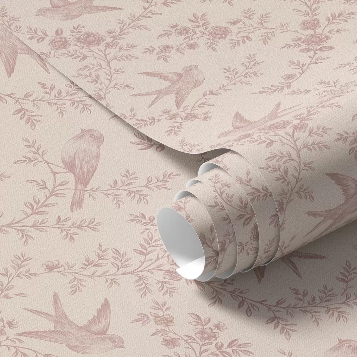 Papel tapiz Pájaros y rosas, estampado vintage en rosa empolvado Nr. a00587