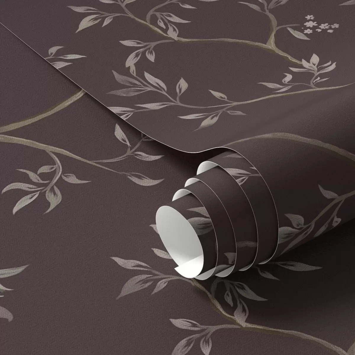 Papel tapiz Delicadas ramas frondosas sobre un rico fondo ciruela Nr. a00597v2