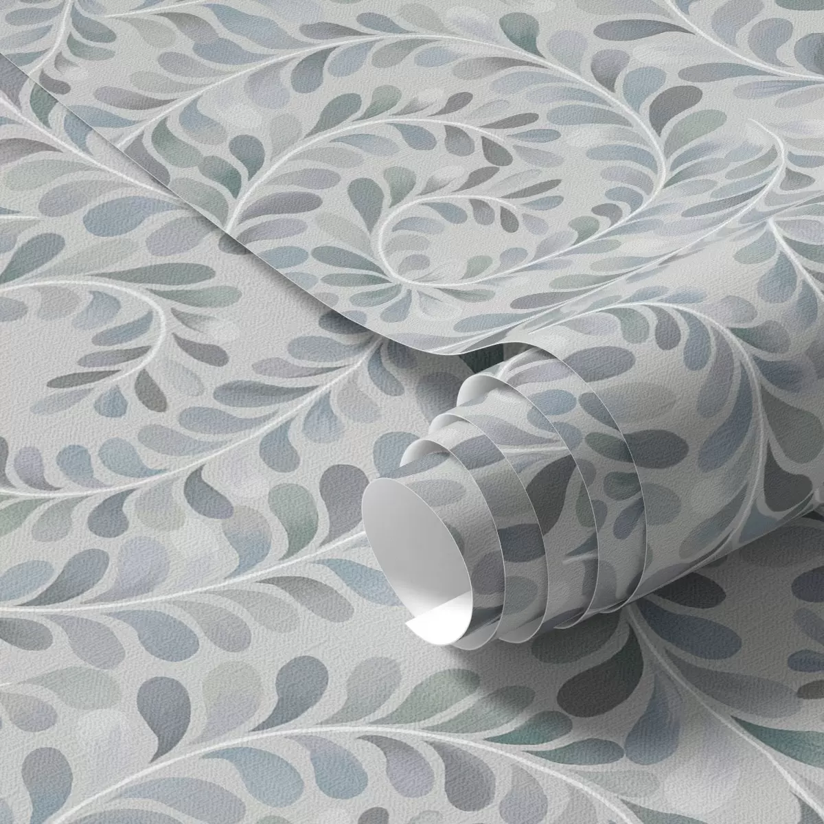 Papel tapiz Hojas en espiral en una paleta de colores azul, gris y verde Nr. a00602
