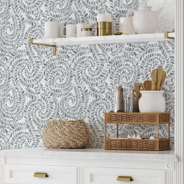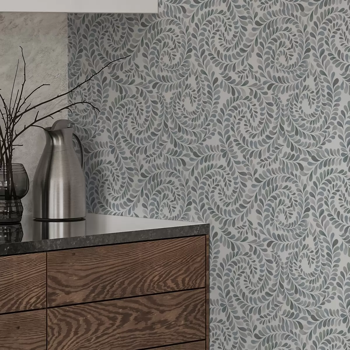 Papel tapiz Espirales frondosas en tonos gris azulados fríos Nr. a00602v1
