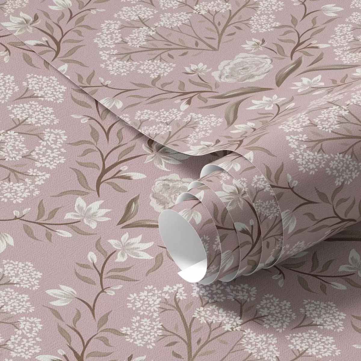 Papel tapiz Damasco rosa: peonías, campanillas de invierno y racimos de encaje Nr. a00603