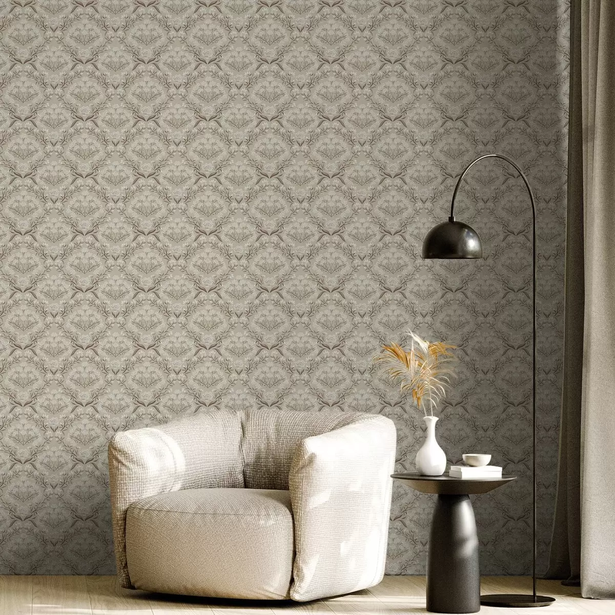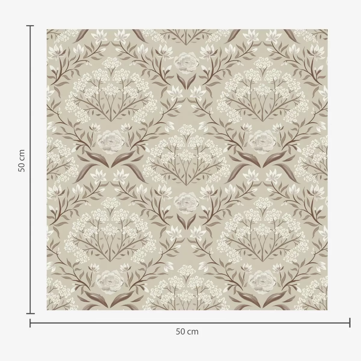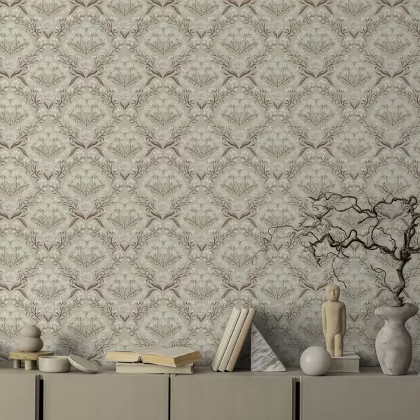 Papel tapiz Damasco beige: peonías, campanillas de invierno y racimos de encaje Nr. a00603v1