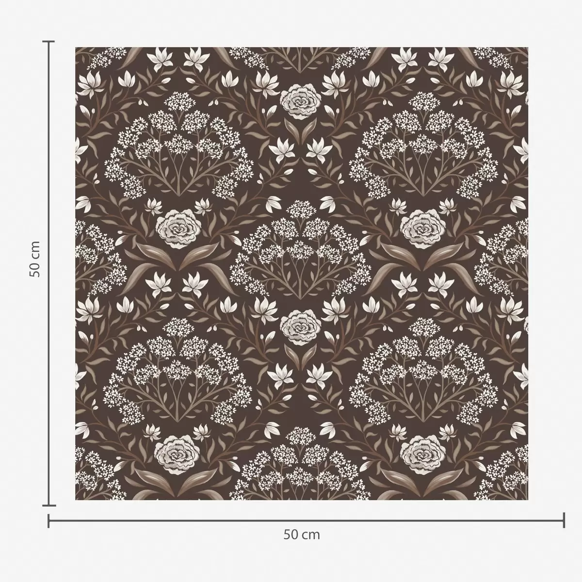 Papel tapiz Damasco de chocolate negro con peonías y campanillas de invierno Nr. a00603v2