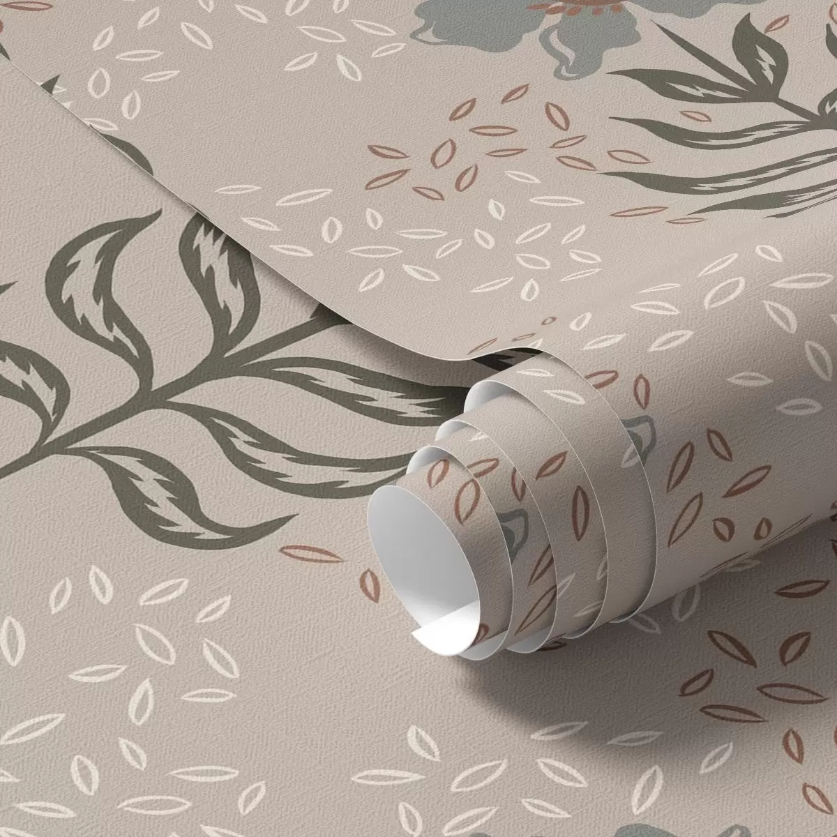 Papel tapiz Flores y semillas estilizadas sobre un cálido fondo beige Nr. a00604