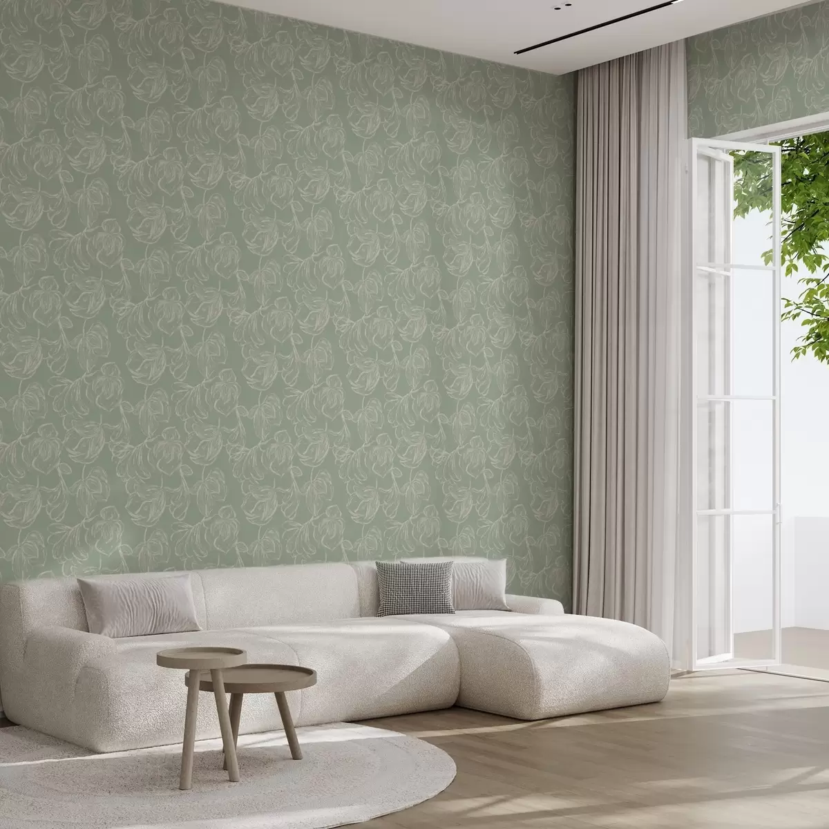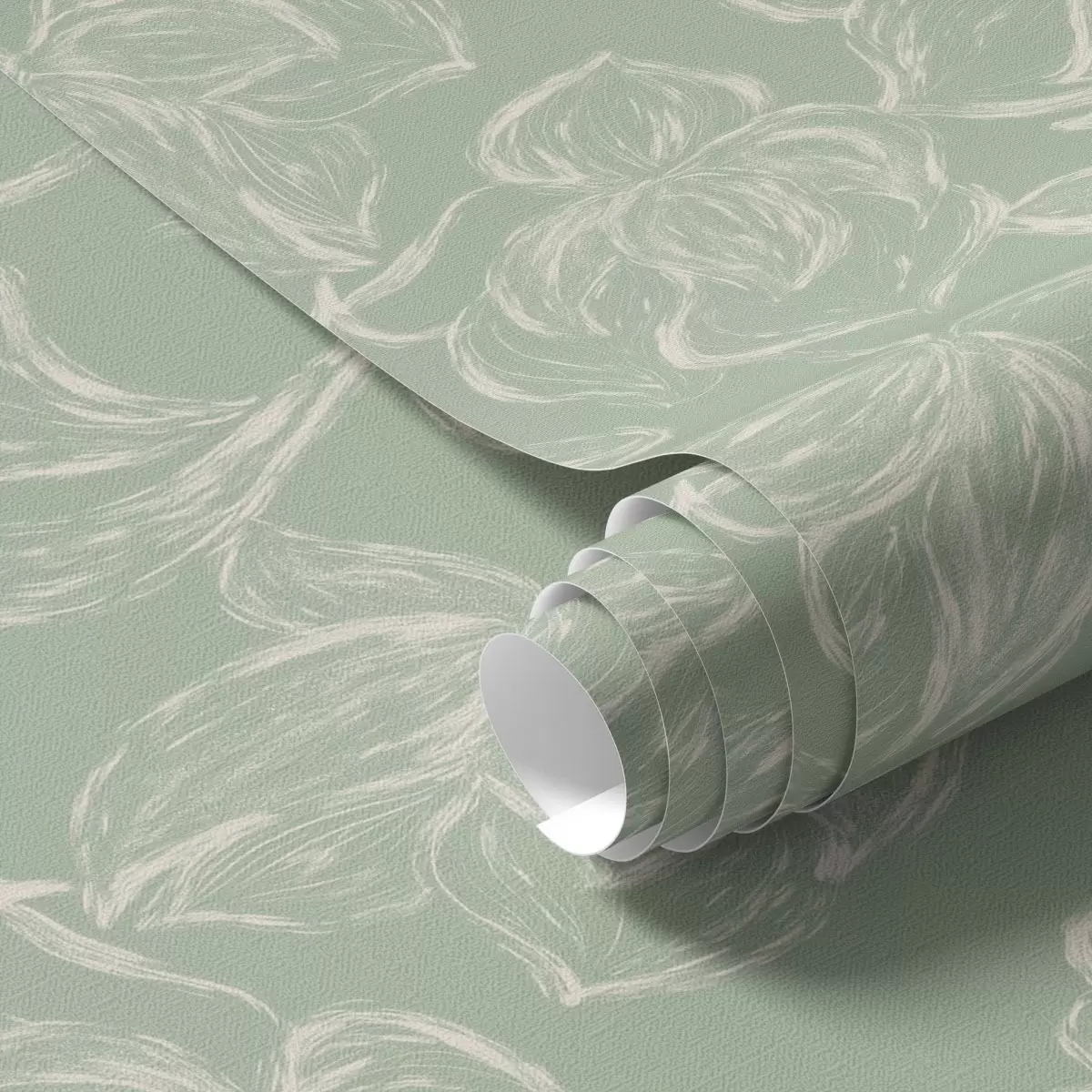 Papel tapiz Flores grandes lineales, trazos de tiza sobre fondo salvia Nr. a00625v1
