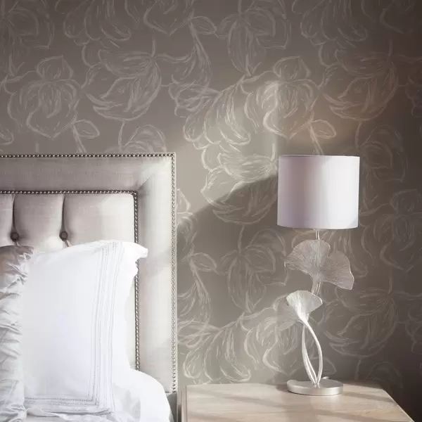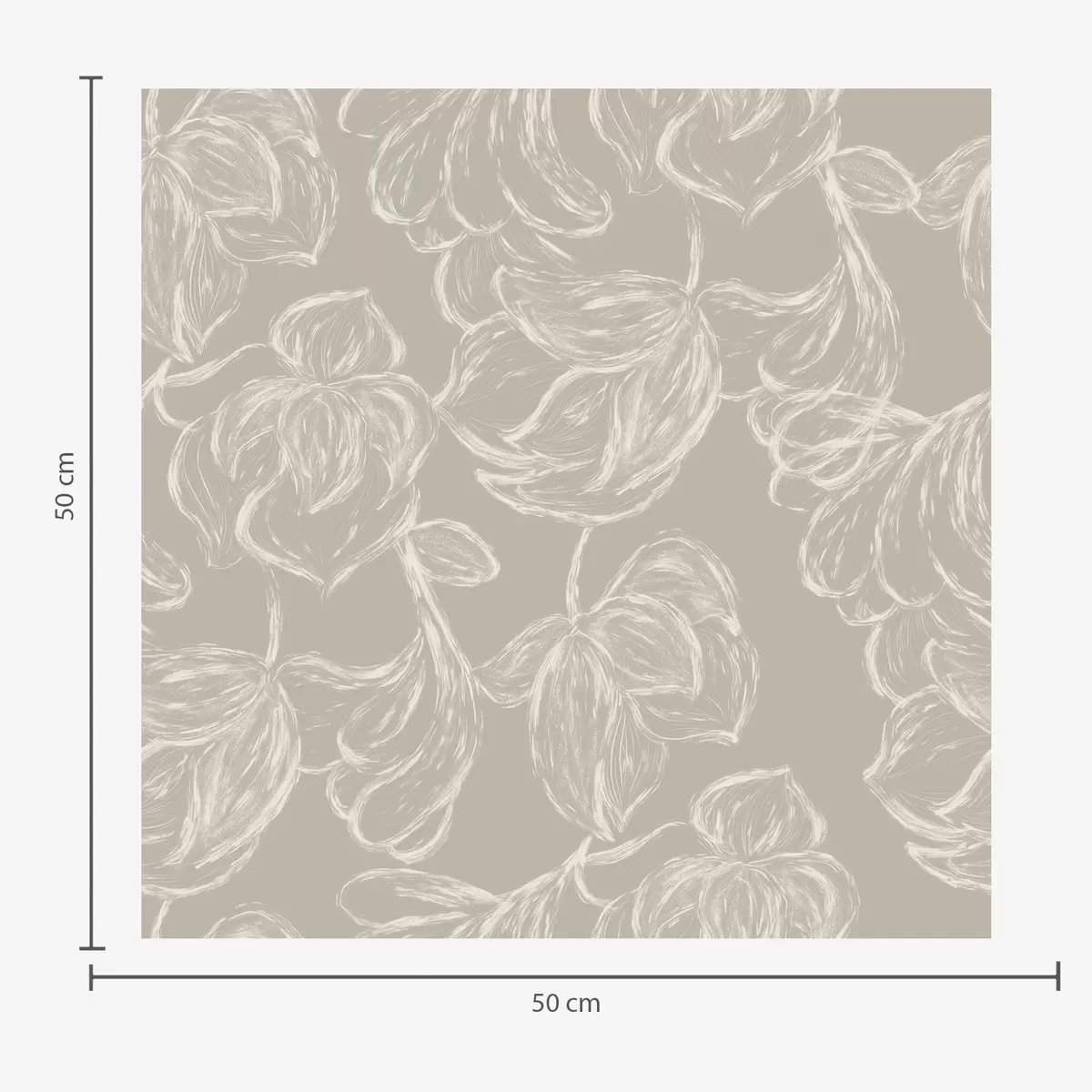 Papel tapiz Flores con contorno en crema sobre un fondo marrón grisáceo cálido Nr. a00625v2